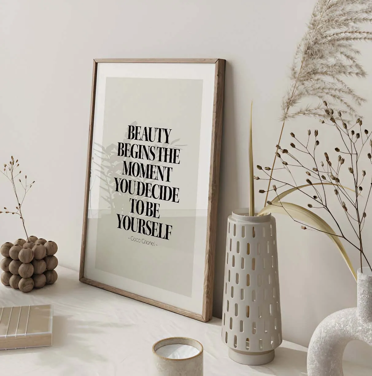 This inspiring set of two framed art prints combines striking minimalist design with a powerful message. Framed in natural wood, these pieces collectively create a sophisticated and motivating atmosphere, perfect for adding artistic flair and daily encouragement to your dining area, living room, or personal space.