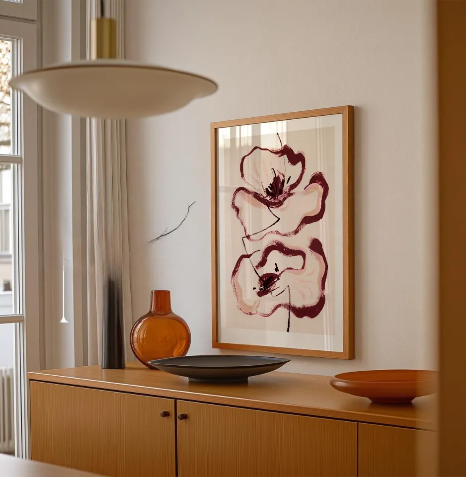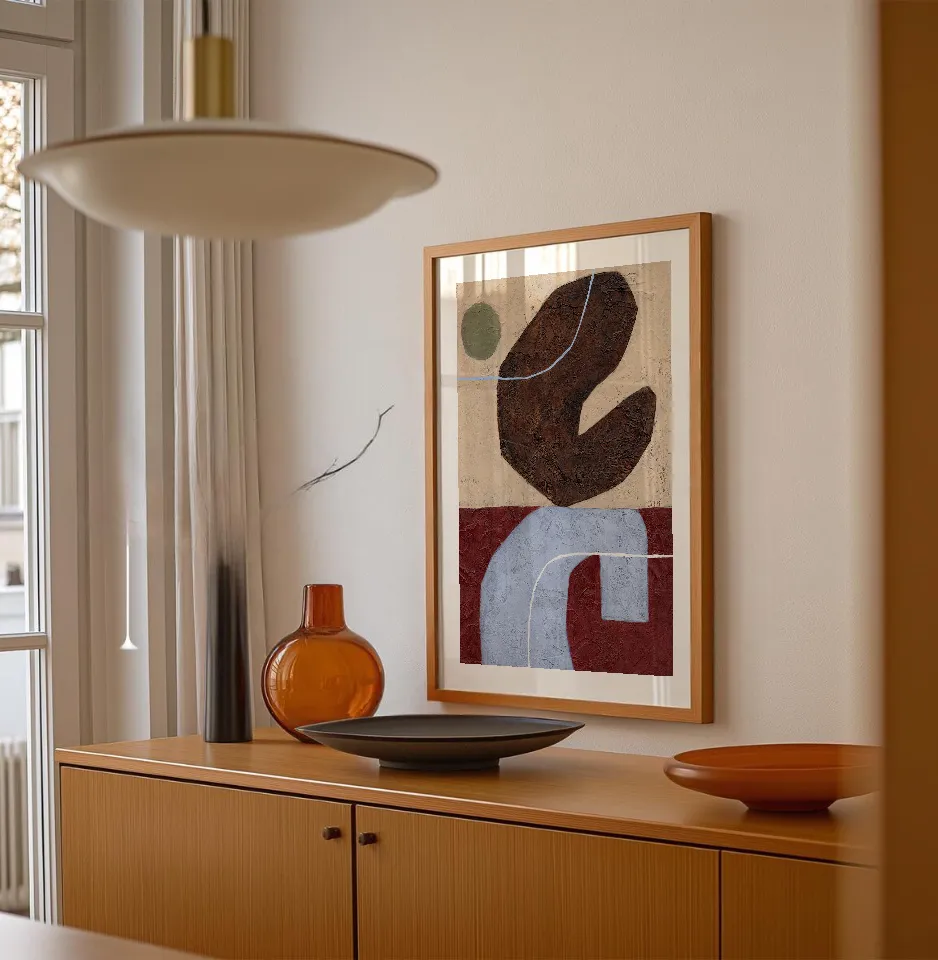 Transform your living area into a sophisticated sanctuary with this meticulously curated 6-piece art set. Designed to bring a sense of warmth and artistic depth to any room, this collection balances bold abstract forms with delicate botanical illustrations and rich, moody still lifes.