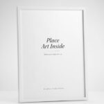 White wood frame wood painted in white. Our white wood frame is equipped with lightweight glass. This frame is fitted with two metal hangers on the back, to enable both vertical and horizontal placement on your wall. The frame opens from the back using the metal clips that turn sideways, making it easy to frame your art.